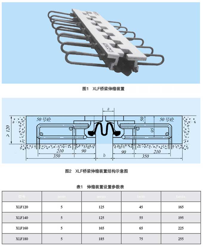 本裝置安裝(見圖2)時必須保 證頂面平宜,澆注混凝土?xí)r要保證梳 形鋼板下部振搗密實,防止出現(xiàn)脫空 現(xiàn)象。本裝置根據(jù)齒板長度不同分為 120、140、160、180四種型號(見表