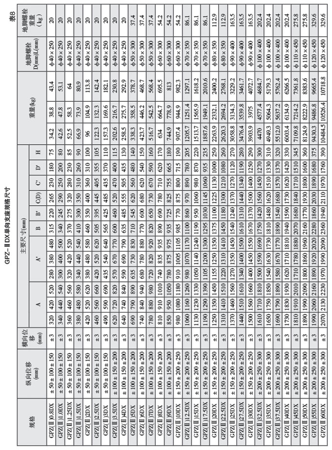 b.單向活動支座:具有豎向承載、豎向轉動和單一方向(縱向或橫向)滑移性能,代號為DX;