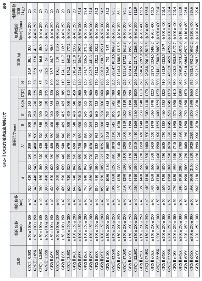 a.雙向活動支座(多向活動支座):具有豎向承載、豎向轉動和多向滑移性能,代號為SX;
